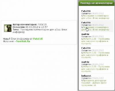 блок-информер "Последние комментарии".